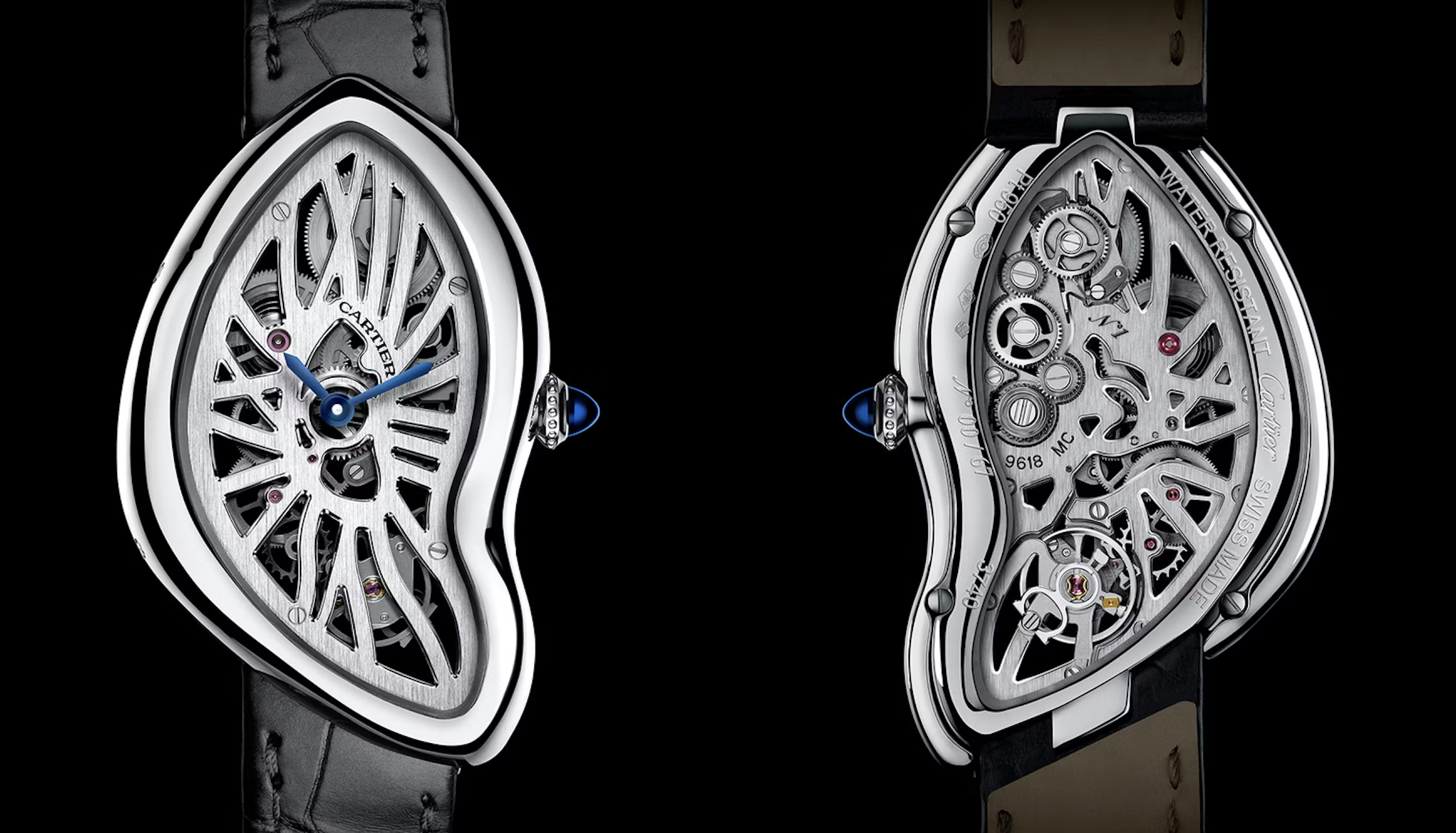 Cartier's 2026 strategy emphasizes the brand's case design archive over movement innovation, and the Crash Skeleton continues that pattern. The technical story sits in the case shape and the way the movement bridges follow that shape, not in a new complication or a redesigned escapement.